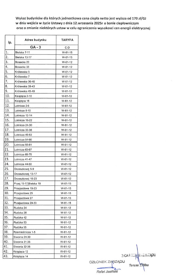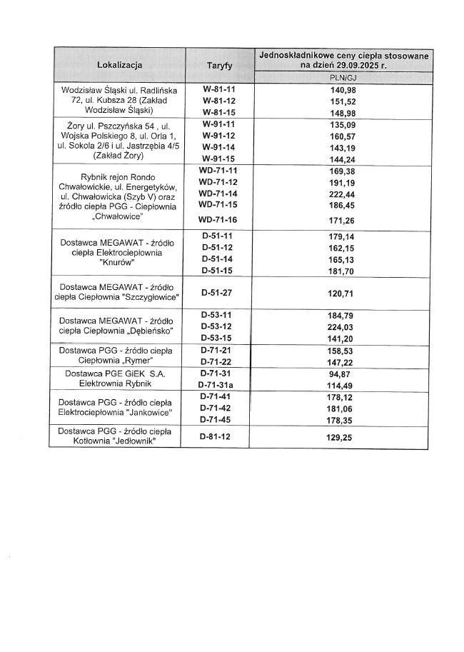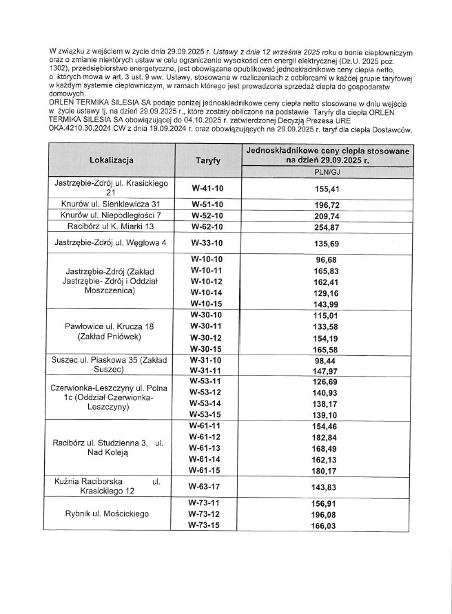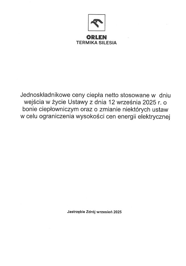 Informacja dotycząca bonu ciepłowniczego 2025 / 2026 Nowe Taryfy dla ciepła od 1 września 2023 r. Nowe Taryfy Ciepła Decyzja